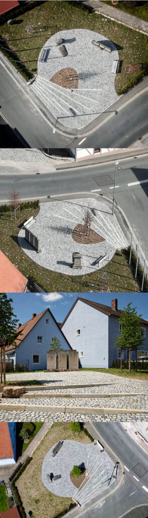 Das Carport in der Münchauracher Ortsmitte hat Gestalt angenommen. Grün, einerseits offen und andererseits einen begrenzten Raum schaffen waren die städtebaulichen Zielsetzungen. Der Vorplatz vom Carport soll als öffentlicher Platz dienen, wo auch gegebenenfalls gemeindliche Feierlichkeiten stattfinden können. Der Carport selbst hat sechs nicht öffentliche Stellplätze und wird mit einer Photovoltaikanlage ausgestattet. Der gewonnene Strom wird durch die Feuerwehr Münchaurach genutzt, der übrige wird eingespeist.